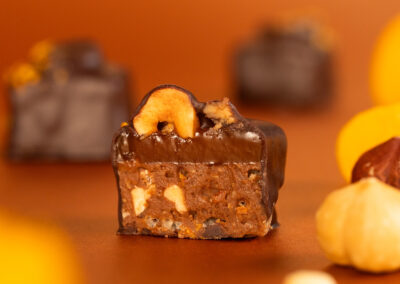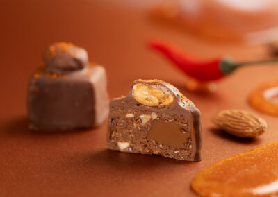Smoked Almond & Hazelnut praline with Caramelised Smoked Chilli Almonds & Salted Caramel.
