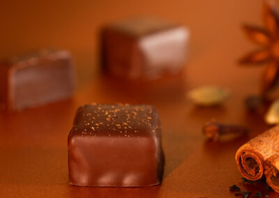 A carefully selected blend of spices and tea, infused into a silky chocolate ganache encased in milk chocolate.