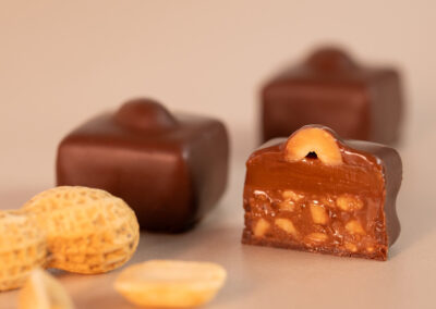 Pure peanut praline with crushed peanuts and a layer of sea salt caramel.