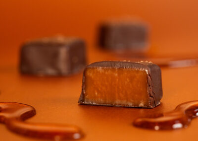 Crispy Piemonte hazelnut praline with a fresh orange salted caramel.